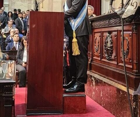 El mandatario, en su salsa: ovacionado por una caterva de trolls que saltaron de Twitter a las bandejas de la Cámara baja; alternando amenazas con extorsiones; deteniéndose cuando el texto marcaba APLAUSO y los contratados no seguían el guion (como para que se dieran cuenta los boludos), con ese andar de rocker y esa media sonrisa socarrona que le sale cuando está bien medicado, Milei sintió que se llevó las palmas. Su imagen frente al atril, parado en un banquito, era la síntesis precisa de la presentación: no daba el piné.