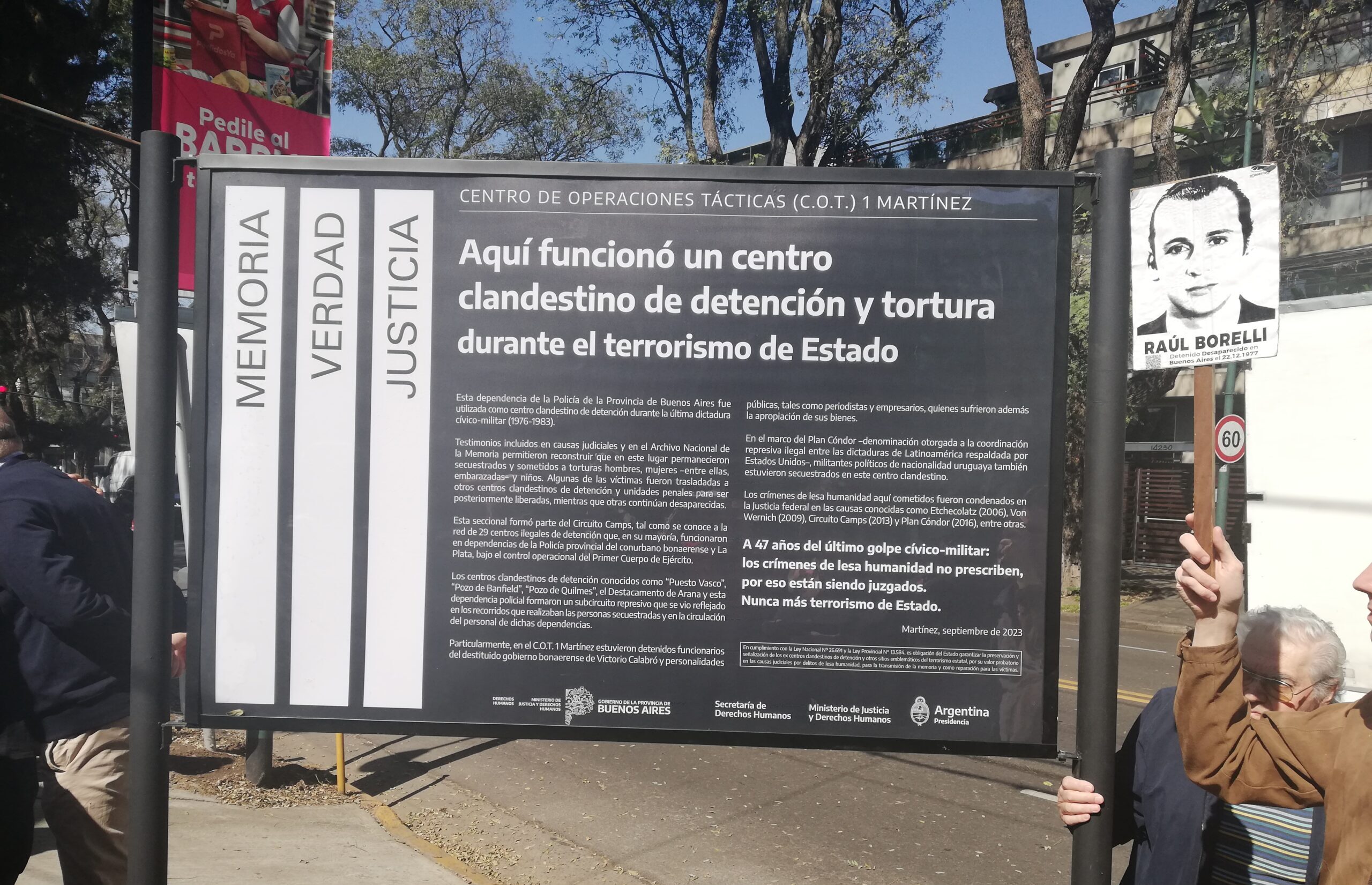 Durante la señalización como Sitio de la Memoria del Ex Centro de Operaciones Tácticas (C.O.T.) 1 de Martínez el sábado 17 de septiembre, acto organizado por la Secretaría de Derechos Humanos de la Nación, Javier Timerman, leyó en honor a su padre, detenido y torturado en ese centro, un testimonio escrito por Jacobo Timerman.