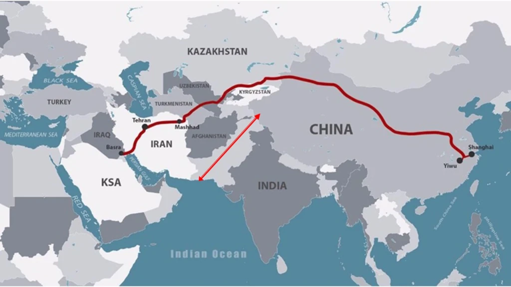 Evadir el cuello de botella del estrecho de Malaca es la lógica, sin presencia militar estadounidense a lo largo de la línea ferroviaria, Teherán puede exportar petróleo e importar bienes de Beijing sin las miradas indiscretas de Washington. La alternativa ferroviarias China-Irán no solo evita el Mar Rojo, sino que reduce el tiempo de transporte de 45 días (vía marítima) a 14 días. Irán suministra el 15% del petróleo importado por China (740,000 barriles por día en abril de 2025).