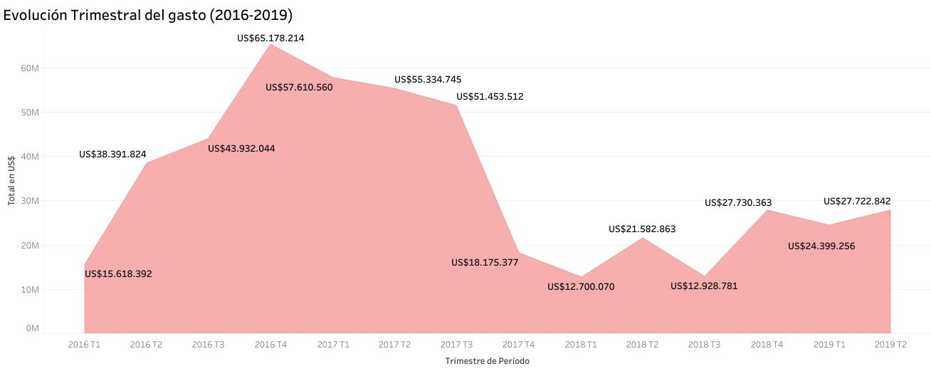 Según los datos publicados por la Jefatura de Gabinete, el gobierno de Mauricio Macri gastó 2.177 millones de pesos en publicidad oficial en el primer semestre de 2019, cuando en todo 2018 había gastado 2.250 millones. La comparación de desembolsos, además, se agrava cuando se contrastan los primeros seis meses de este año con el mismo período del año anterior, cuando lo volcado en pauta alcanzó los 776 millones, lo que representa un aumento de casi el 200% en la previa del ciclo electoral.