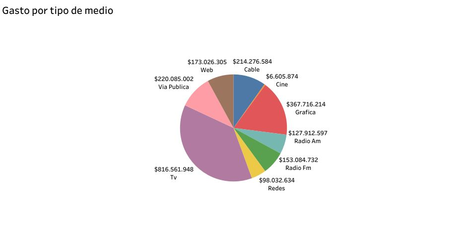 En relación al recorrido de lo que recibe el sistema de medios en relación a su clasificación por soportes, los datos exponen que la TV abierta es el que más recibe, seguido por la gráfica, la radio, vía pública, TV cable y web. Las redes sociales solo superan al cine.