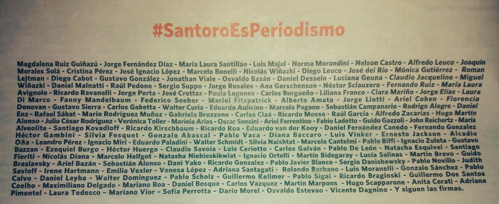 • *Santoro no escribe en Clarín como un simple redactor, cada una de sus notas está pautada con extorsionadores, operadores judiciales, y lo paraoficial*.