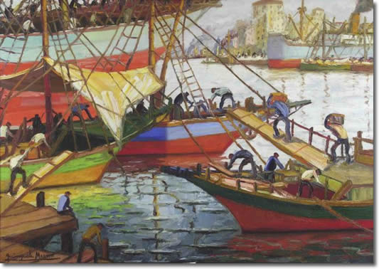 En ese marco había empezado a dibujar, inspirado en las escenas y colores que observó en el puerto. Usaba técnicas intuitivas dado que ignoraba los más elementales conocimientos, y sus dibujos eran rudimentarios y torpes, utilizando carbón y lienzos de madera como elementos de un trabajo que rápidamente eliminaba para evitar las bromas de sus compañeros.