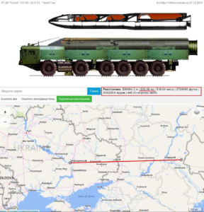 El cohete fue lanzado desde Volgograd (la antigua Stalingrad), a orillas del Volga, recorrió 840 km en poco más de 3:30 minutos y destruyó su objetivo en la ciudad de Dnipró, a orillas del Dniéper: