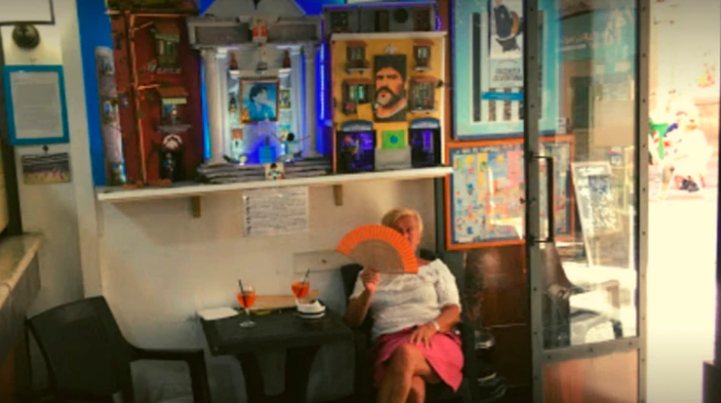 Este bar es un clásico napolitano por tener, entre otras piezas características, un altar popular a Diego Maradona, quien desde el año ´87 consiguió que la ciudad estallara más fuerte que la memoria del Vesubio con sus goles, jugadas, la consecución de la copa UEFA y los «scudettos».