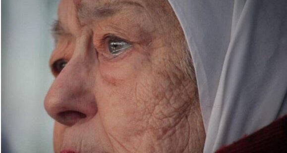 Por Viviana Britos para @visionpaisarg Diciembre 7, 2023 Estanislao Santos, fotoperiodista, es el responsable de esta imagen: el momento en que Hebe se pone el pañuelo, instante en que ella se encuentra con sus hijos, según decía. Los ojos cerrados y la expresión de su rostro dan cuenta de la comunión de almas, de profunda convicción, de profunda ternura,