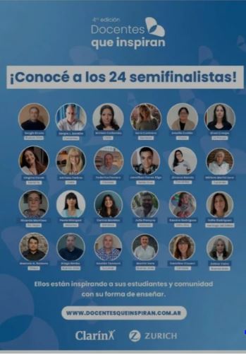 Esta semana se conocieron los 24 semifinalistas del concurso Docentes Que Inspiran 2024, una iniciativa de Clarín y Zurich, que busca reconocer a aquellos que marcan la diferencia: «Busca movilizar a toda la comunidad en favor de una mejor educación, a partir de las historias inspiradoras de aquellos docentes excepcionales, que dejan una huella decisiva en sus estudiantes», señala la organización.