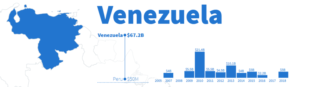 La lógica es la siguiente. China ha tratado de seducir a la Comunidad de Estados Latinoamericanos y Caribeños (CELAC) para que se incorpore al gigantesco proyecto de infraestructura conocido como la Nueva Ruta de la Seda. Por otra parte, como lo muestra el cuadro siguiente, China generó una estrategia geoeconómica en Venezuela con préstamos por más de U$S 67.000 millones desde el 2007-2018.