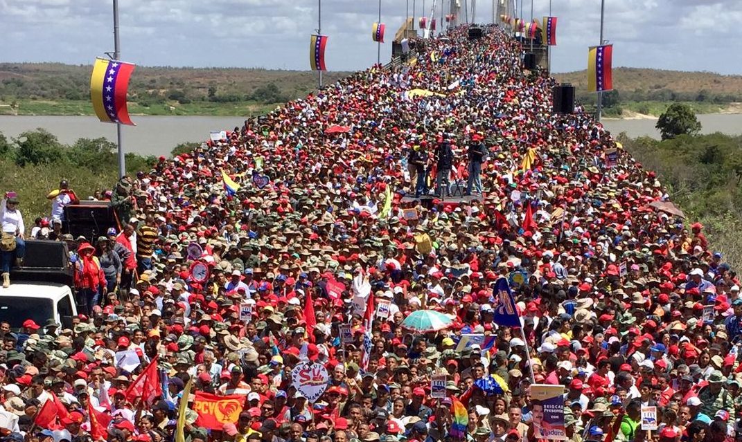 Foto: manifestaciones populares a favor del gobierno de Maduro, en el puente Bolívar, con el lema "Venezuela tierra de paz"
